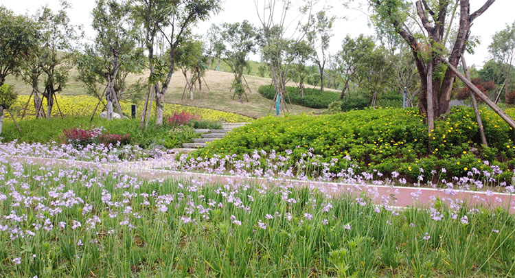興綠園林公司按照海綿城市建設(shè)要求,將海綿城市建設(shè)作為一項(xiàng)長期發(fā)展規(guī)劃融入到園林綠化建設(shè)過程中,積極推廣踐行海綿城市設(shè)計(jì)及建設(shè)。2021年,興綠園林公司實(shí)施的龍澗溪公園(高鐵站片區(qū)段)工程項(xiàng)目,將水生態(tài)治理和場地內(nèi)海綿系統(tǒng)建設(shè)相結(jié)合,利用原有的水系、山體以濕塘、雨水濕地、生態(tài)浮島、生態(tài)植草溝、植物緩沖帶透水鋪裝及蓄水模塊等構(gòu)建公園內(nèi)部水系統(tǒng),結(jié)合城市管網(wǎng)灰色基礎(chǔ)設(shè)施及超標(biāo)雨水排放系統(tǒng),利用新材料、微地形改造、植物生態(tài)生境,形成滲、滯、蓄、凈、用、排的水系循環(huán),大大減輕周邊城市管網(wǎng)排水壓力。2021年8月投入使用后,被瀘州海綿辦作為瀘州海綿城市公園建設(shè)典范,住建部、山西省等省部級單位、省內(nèi)各地市州單位先后前來參觀交流,得到了各界領(lǐng)導(dǎo)的高度認(rèn)可,市民對海綿城市建設(shè)的知曉度、滿意度評價(jià)也越來越高。
