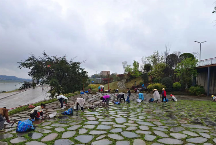 在長江濱江公園、小關(guān)門、三道橋、恒大御江灣、四公里等維護綠地,隨處可見身穿綠色工作服的興綠園林公司綠化工人忙碌的身影,他們除草、松土、補植、澆水、打支撐,最后清潔場地,分工合作,井然有序,一片繁忙的景象。