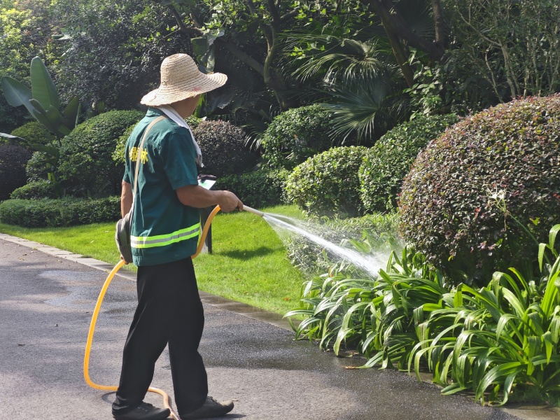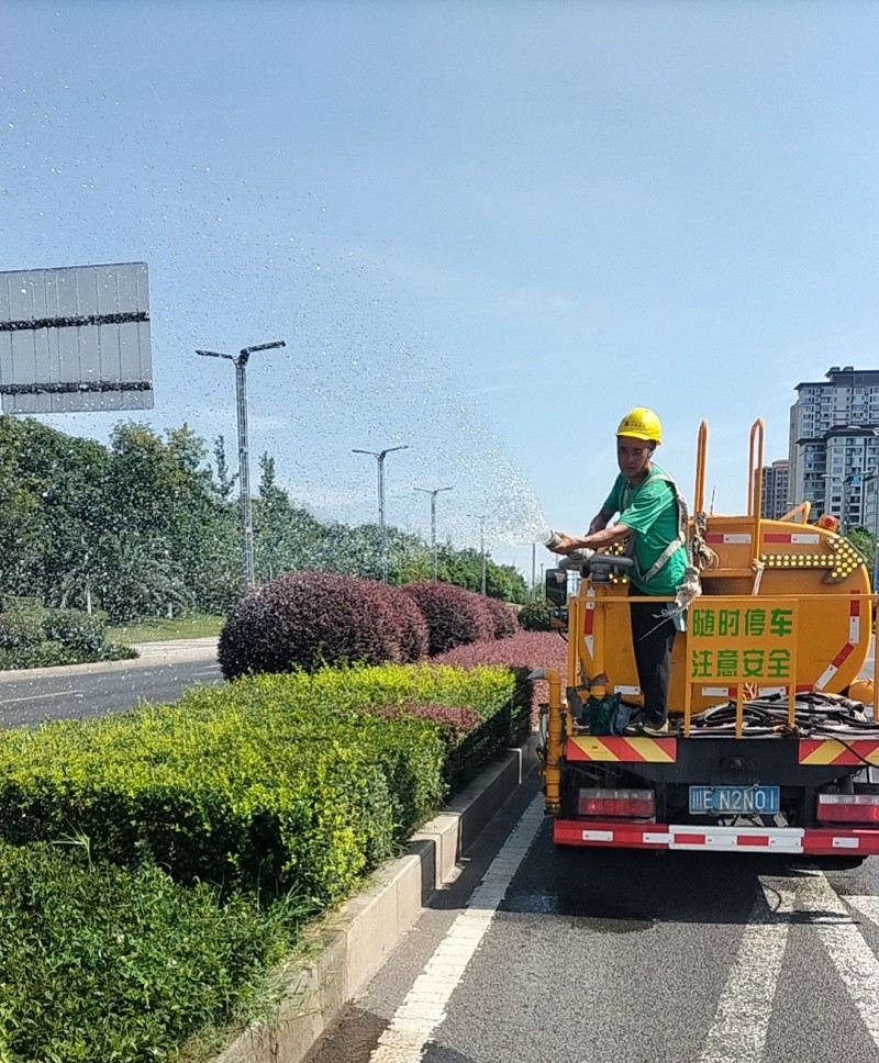 公司根據(jù)綠化植物耐旱程度不同,區(qū)別澆灌,合理調(diào)整澆水時(shí)段,避開中午高溫,采用錯(cuò)峰澆水方式,在清晨、傍晚和夜間開展作業(yè),同時(shí)加強(qiáng)夜間澆水力度,延長澆水時(shí)間,做到人跟車走,輪換作業(yè),人歇車不停。